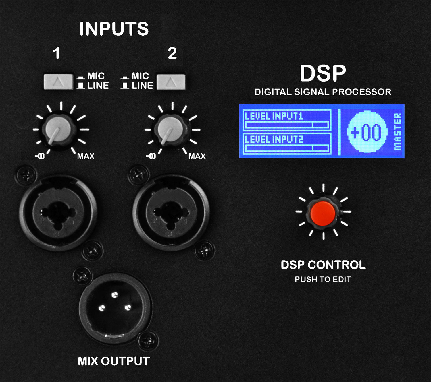 With the Easy Control DSP you take total control of your sound. Press and rotate - that´s all. The graphic backlit display shows you what you select. Choose from several sound programs, edit the sound character and simply get started. Choose, what you want to connect at the clearly arranged connection panel. With the separately controllable inputs you decide if you want to connect a microphone, a mixer, an instrument or a player. And this twice. On both input channels, you can choose if you want to connect a cable with XLR or 6.3 jack connectors. Choose the "MIC" or "LINE" mode and set the input levels quickly with the gain controls, independently from each other.