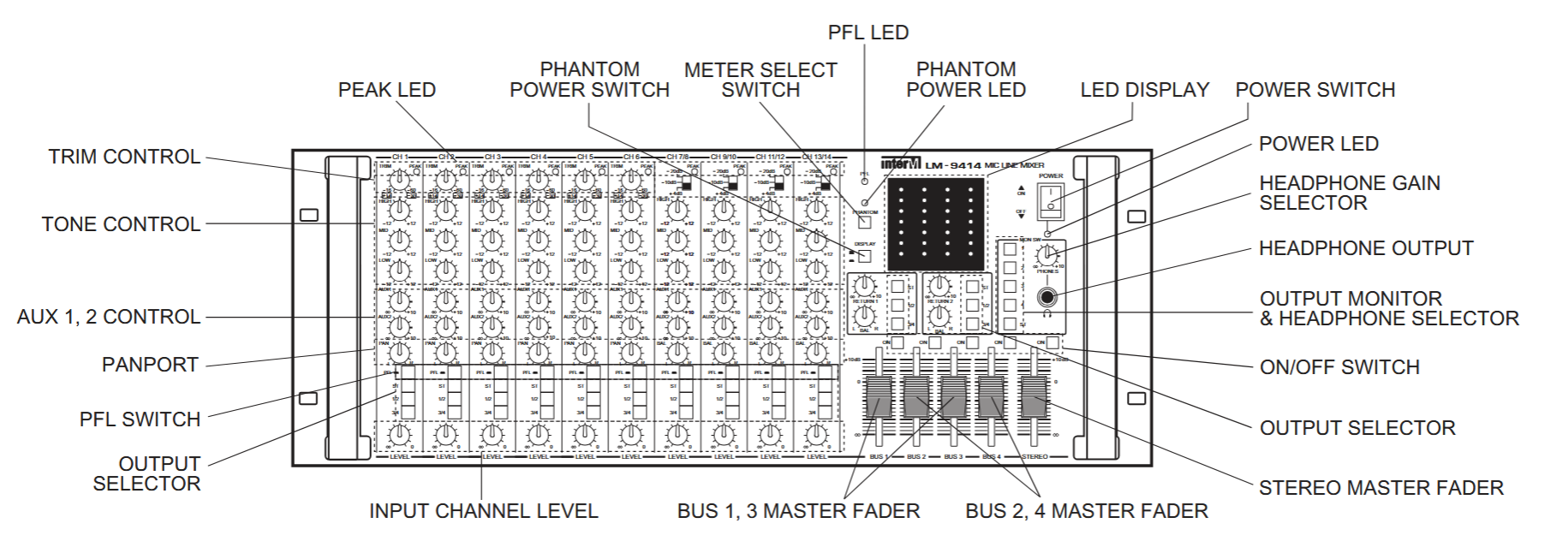 inter-M LM-9414 4 BUS MIC LINE MIXER