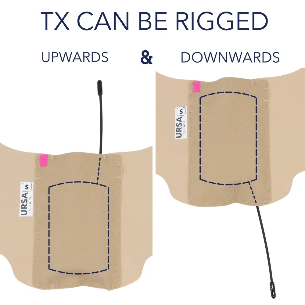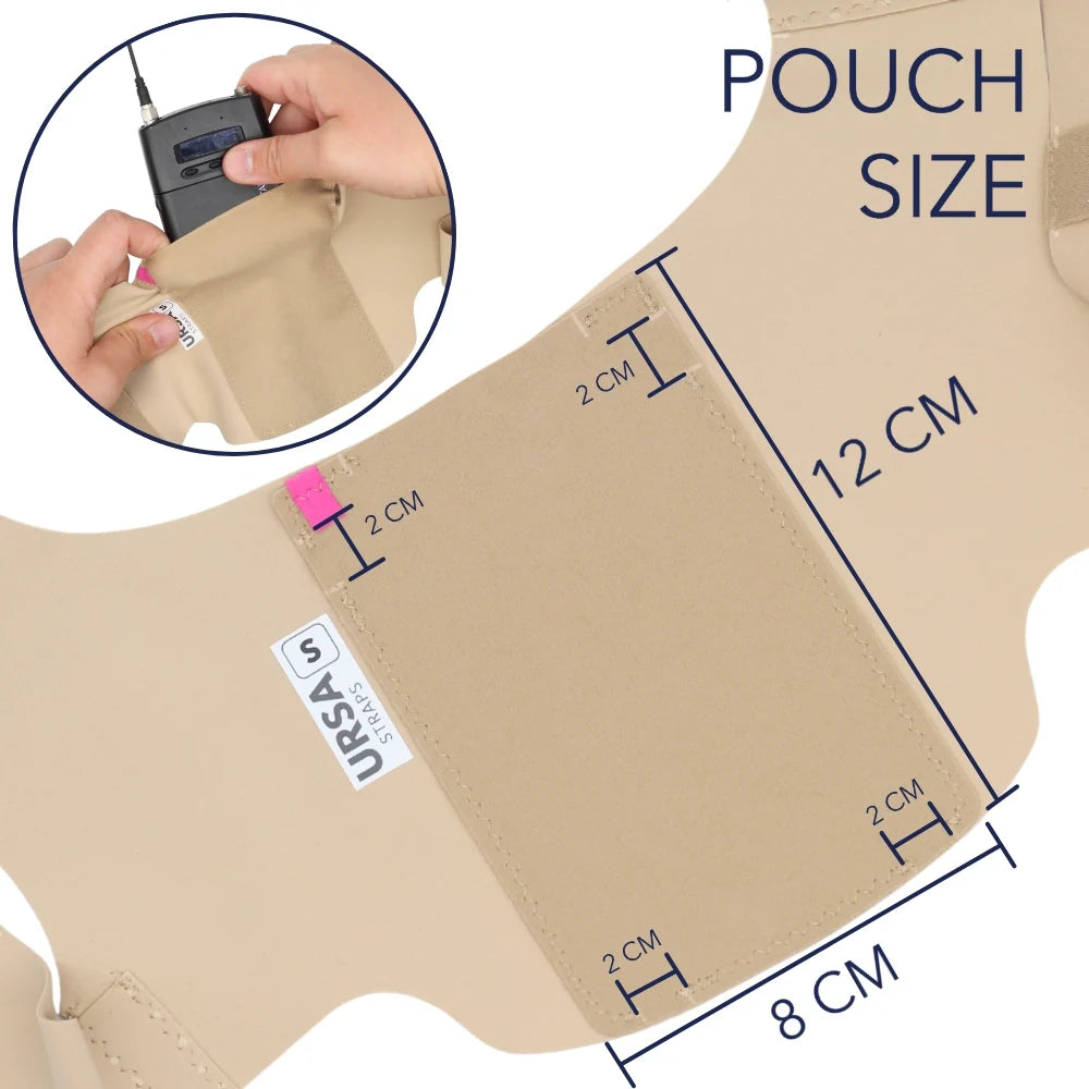 The URSA X Strap is designed specifically as one solid unit with no Velcro, making it durable and secure. It features four mic pouches along the chest strap, designed for DPA 6060 & DPA 4060 diameter microphones, one pouch for an URSA Minimount, and a fourth larger pouch for a Sanken RM11.