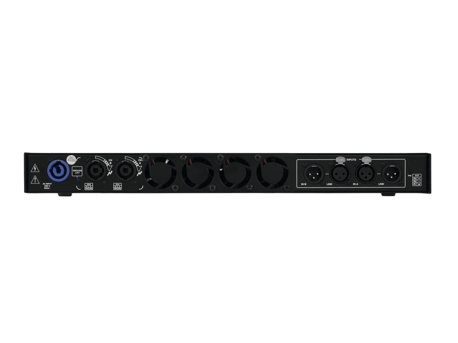 Class D stereo PA amplifier with SMPS, 2 x 1200 W RMS (4 ohms), 2 x 880 W RMS (8 ohms)
