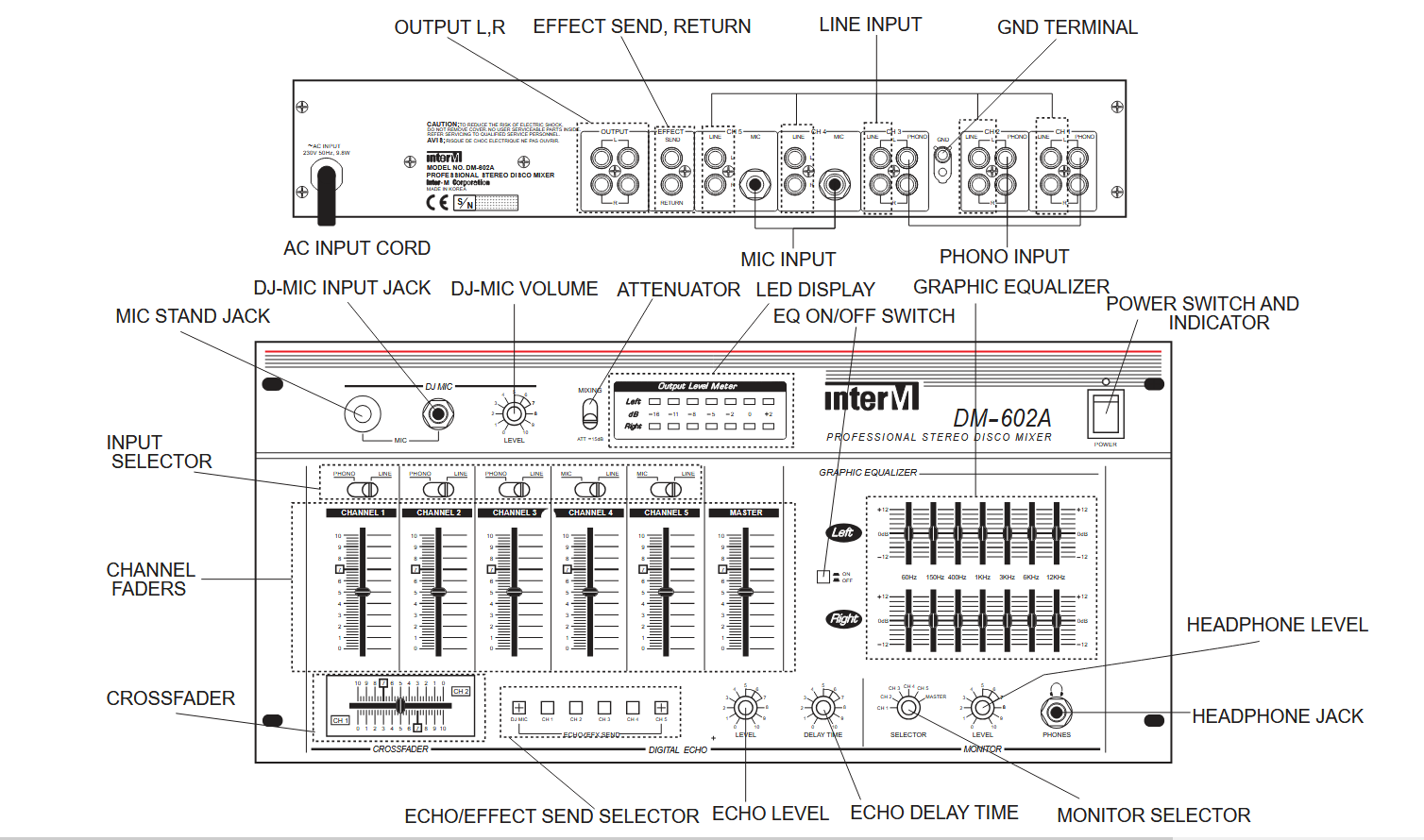 - 5 STEREO CHANNEL, DJ MIC INPUT AND