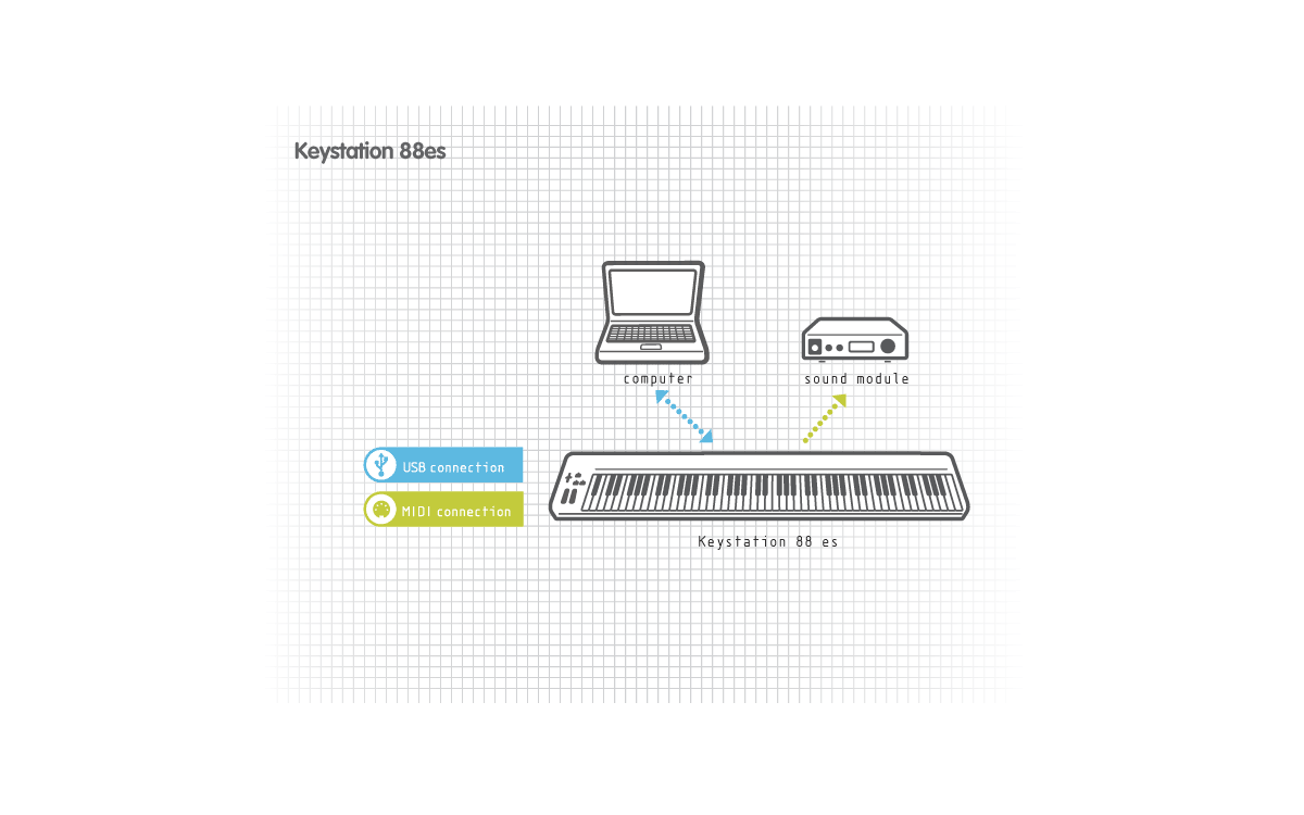 If you appreciate the full range of a piano keyboard in a lightweight package, the 88-note Keystation 88es is for you. You get great-feeling, semi-weighted action that’s velocity sensitive to convey all the nuances of your playing to your computer and most popular music education and studio software. The pitch and modulation wheels plus slider and buttons make it a great controller for playing and programming synths, samplers, drum sounds and more. At just 22 lbs., the Keystation 88es is equally at home on stage and in the studio. Class compliancy with Windows XP, Vista (32 bit), and Mac OS X ensures easy plug-and-play setup. It’s even bus-powered, so one simple USB cable is the only connection you need.
