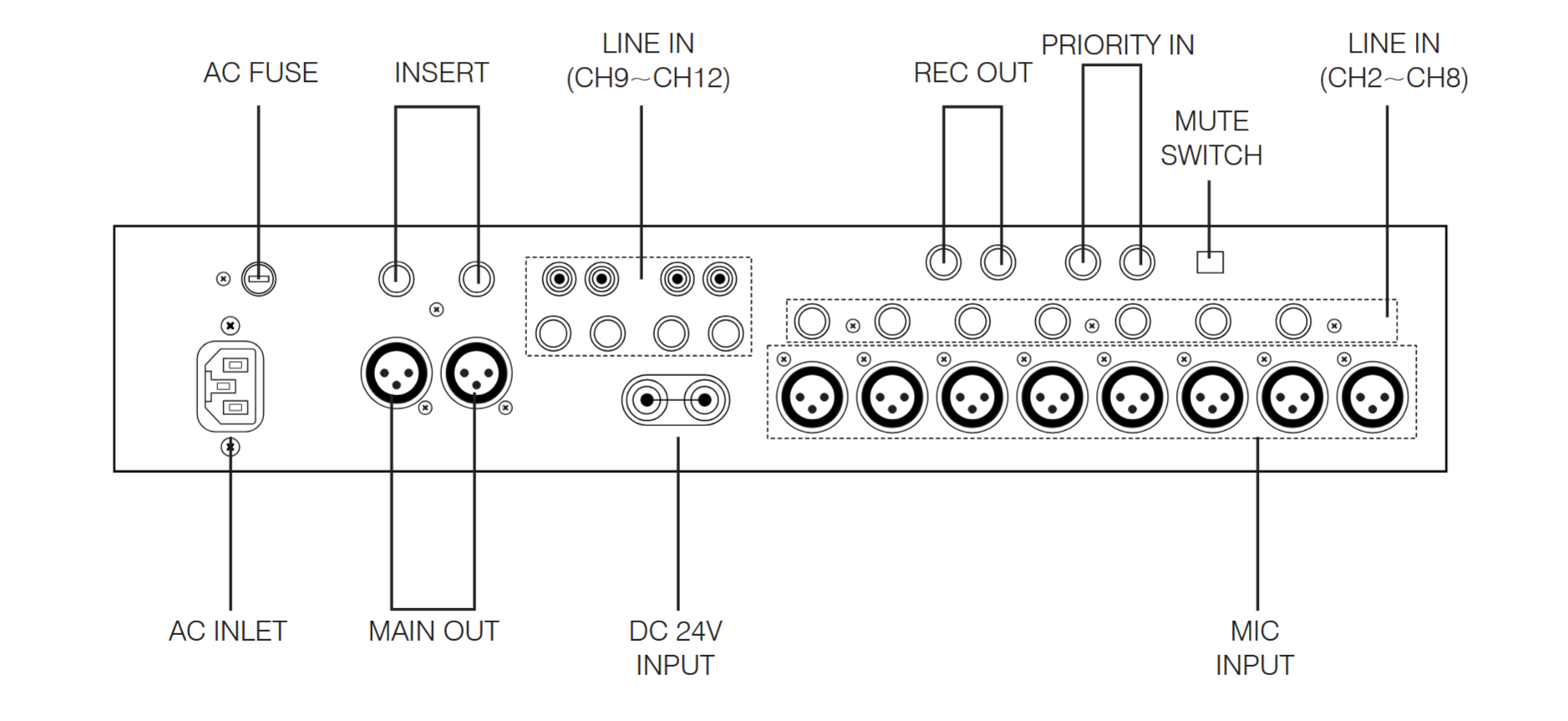 Input Sensitivity/Impedance Mic -60dB / 600Ω Balanced