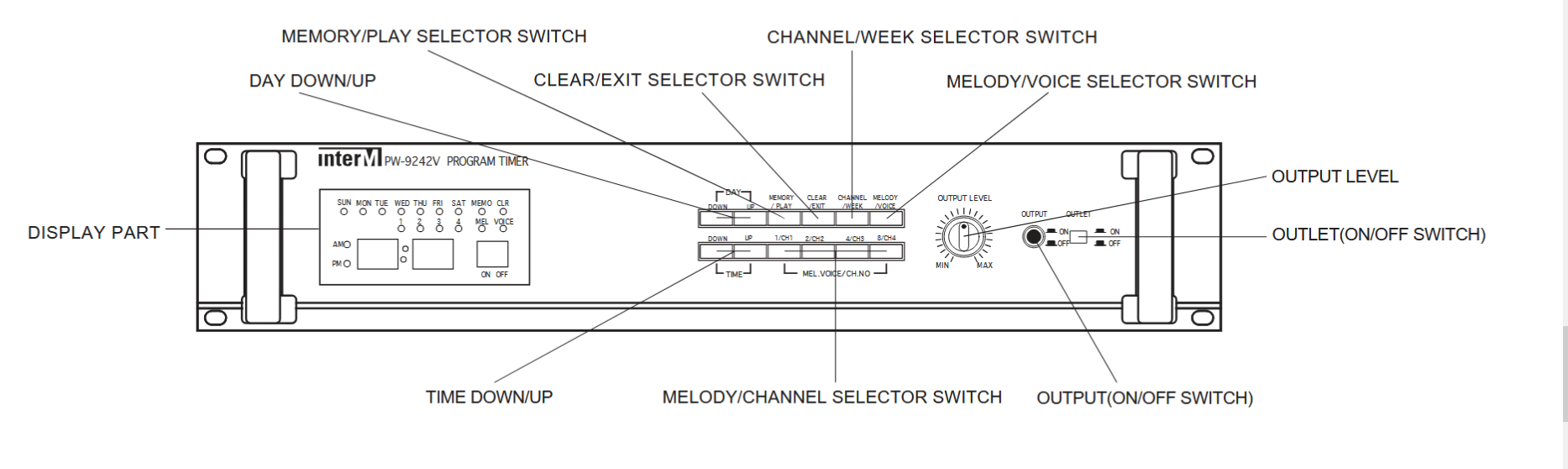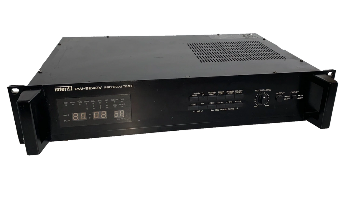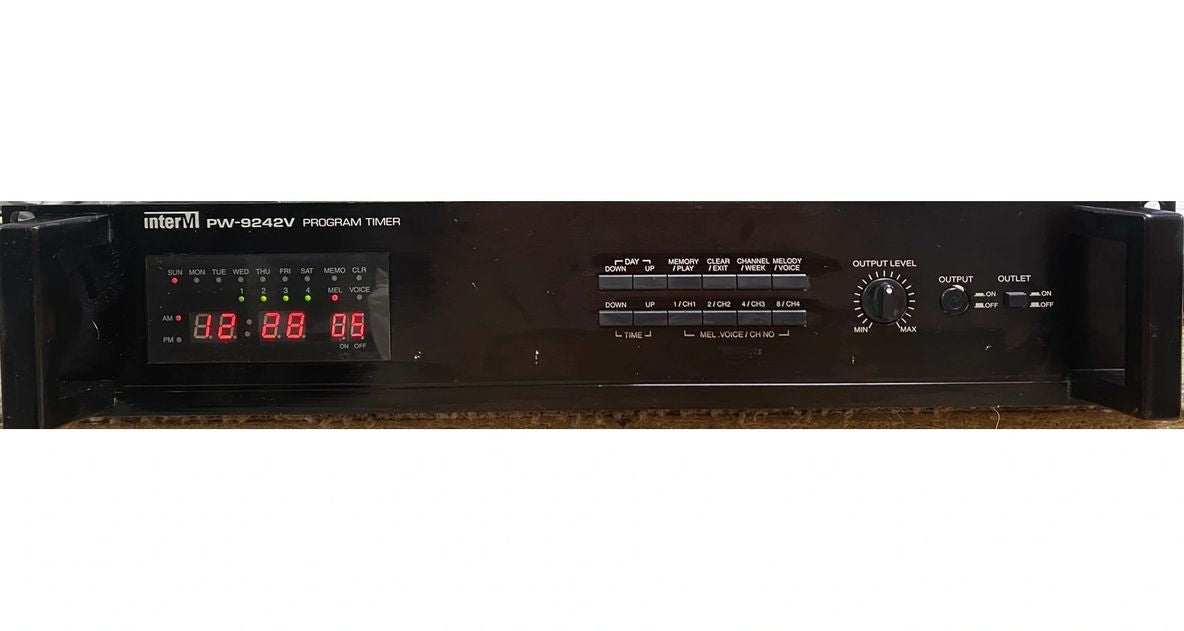 Inter‑M PW‑9242V is a weekly programmable timer used in public‑address (PA) and school bell systems. It automates scheduled playback of melodies, tones, or voice messages across a building’s audio network. It’s widely used in schools, factories, and public facilities where precise, repeatable timing is needed.