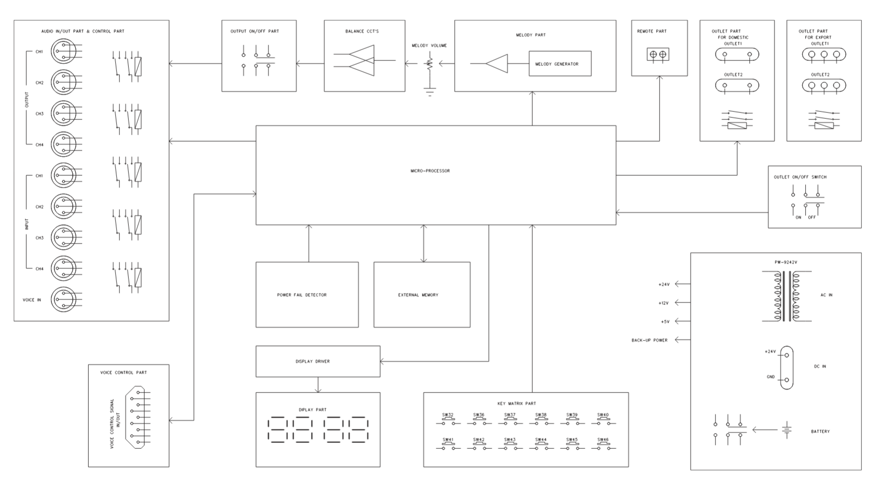 - PROGRAM MEMORY AND MEMORY TIME INTERVAL: You can memory and store the datas for Automatic control of this timer. These datas are consist of an melody or voice number, channel number for signal output with operating time and on/off time for outlets. The time interval for memory is 1 minute.